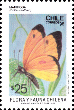 Diese Marke aus Chile (MiNr 1243) zeigt einen Colias vauthierii.