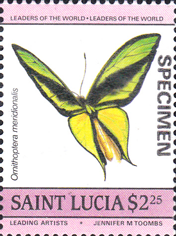In St.Lucia ist in einer Serie auch eine Marke (MiNr 737) mit einem Ornithoptera meridionalis Männchen erschienen.