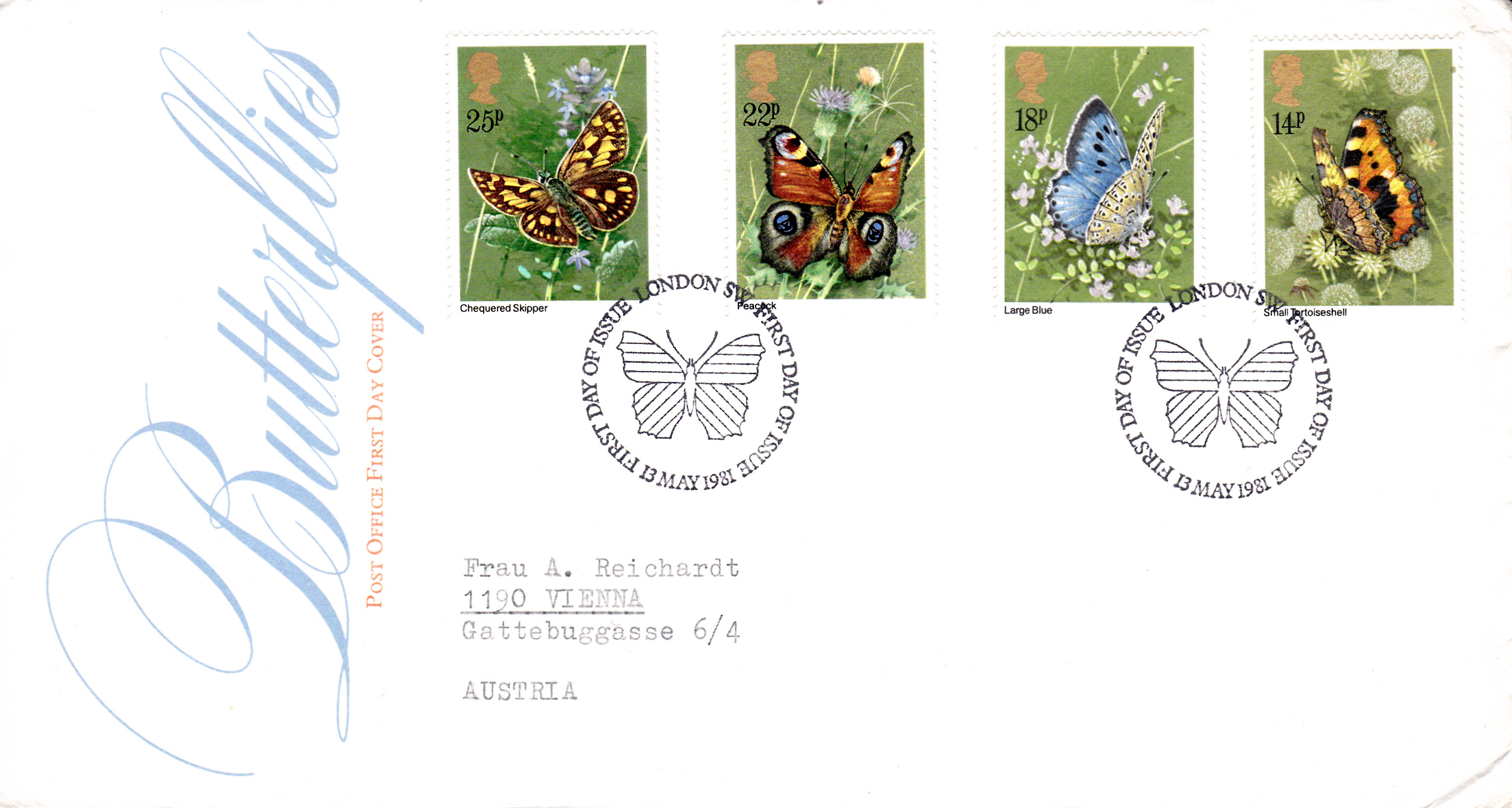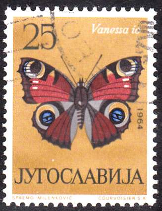 Auf dieser Marke aus Jugoslawien (MiNr 1069) ist ein Tagpfauenauge (Aglais io) abgebildet.