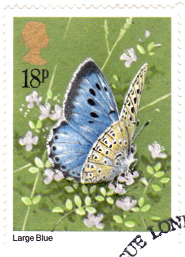 Auf dieser Marke aus Großbritannien wird ein Quendel-Ameisenbläuling (Maculinea arion) gezeigt.
