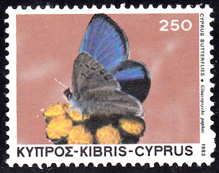 Aus Zypern kommt auch die Marke (Minr 586) die eine Schmetterling dieser Art zeigt.