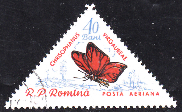 Der Dukatenfalter (Lycaena virgaureae) wurde hier bereits vorgestellt und ist hier auf dieser Marke aus Rumänien (MiNr 1920) im Flug zu sehen.