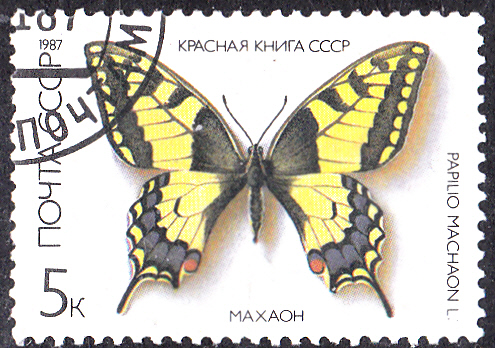 Aus der Sowjetunion kommt diese Marke (MiNr 5679) mit einem Schwalbenschwanz (Papilio machaon).