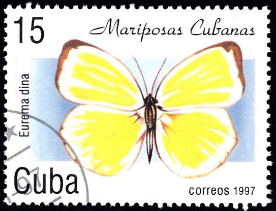 Auf dieser Marke aus Kuba (MiNr 4015) wird ein Eurema dina vorgestellt.