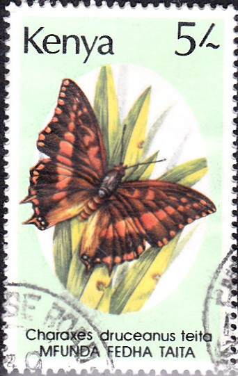 Aus Kenia kommt diese Marke (MiNr 426) mit einem Tagfalter der Unterart Charaxes druceanus taita, der im südöstlichen Kenia und in Tansania verbreitet ist.