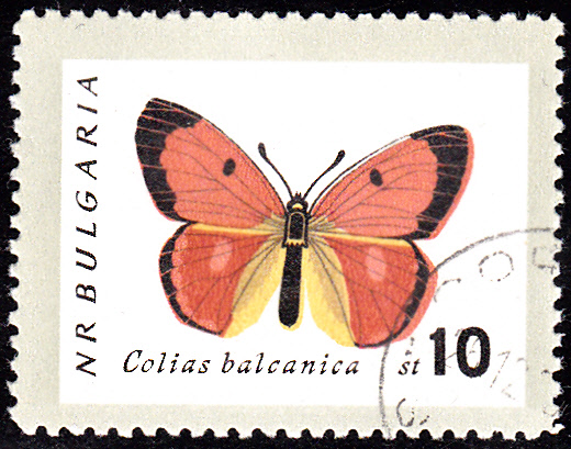 Diese Marke aus Bulgarien (MiNr 1345) bildet laut Michel einen Orangerote Heufalter (Colias myrmidone) ab. Es gibt in Bulgarien offenbar eine Unterart mit der Bezeichnung Colias balcanica oder er wird dort so benannt.