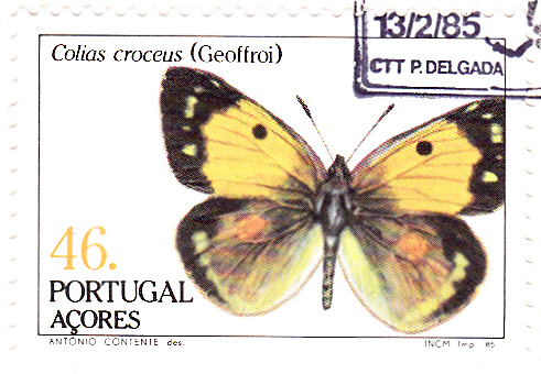 In einer Serie "Insekten" ist in Portugal Azoren diese Marke (MiNr 371 A) mit einem Postillon (Colias croceus) erschienen.