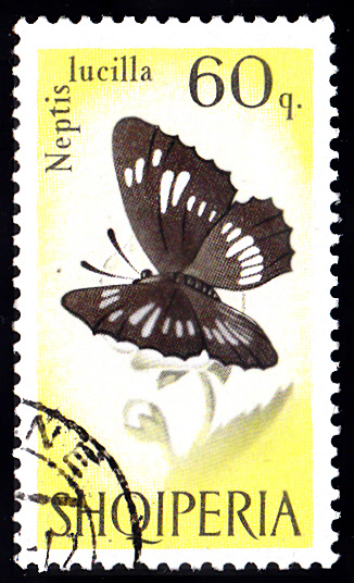 Hier eine Marke aus Albanien (MiNr 1055) mit einem Schwarzen Trauerfalter (Neptis rivularis).