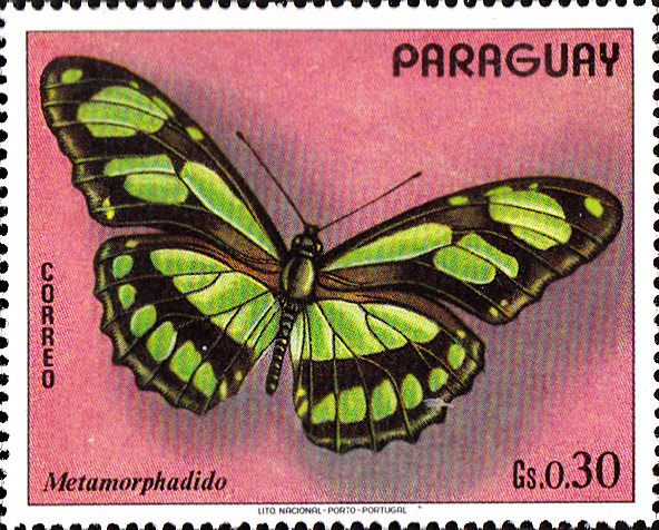 Es folgt eine Marke aus Paraguay (MiNr 2413) mit einem Philaethria Dido.