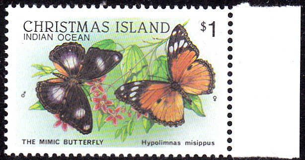 Hier eine Marke der Weihnachtsinsel (MiNr 246 I) mit einem Weibchen und einem Männchen. Die Marke gibt es auch mit Jahreszahl 1988 aus Zusammendruck-Bogen (MiNr 246 II).