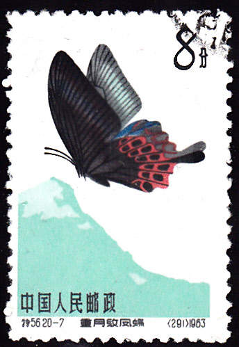 Diese Marke der Volksrepublik China (MiNr 727) zeigt einen Papilio hoppo.