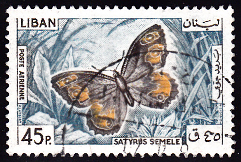 Hier zeige ich eine Marke aus dem Libanon (MiNr 903) mit einem Ockerbindige Samtfalter (Hipparchia semele) Bei Michel wird er Heidefalter (Satyrus semele) genannt.