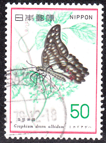 Hier eine Marke aus Japan mit der Abbildung eines Falters der Unterart Graphium doson albidum.