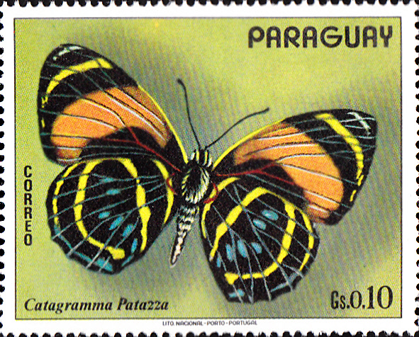 Auf dieser Marke aus Paraguay (MiNr 2409) wird ein Catagramma Patazza gezeigt.