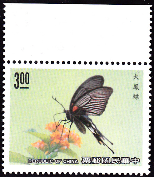 Hier eine Marke aus China Taiwan (MiNr 1868) mit einem Vertreter der Unterart Papilio memnon heronus.