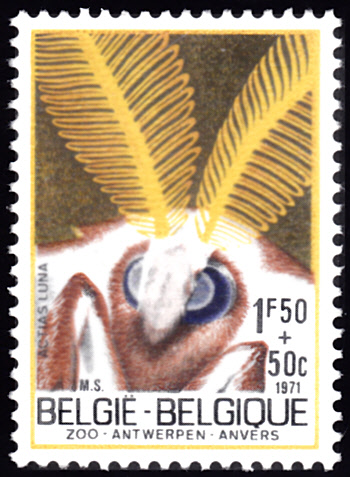 In Belgien ist in einer Serie eine Marke (MiNr 1663) mit einem vergößerten Kopf mit Fühler eines Actias Luna erschienen. Michel nennt als Name Mondvogel (Actias luna).