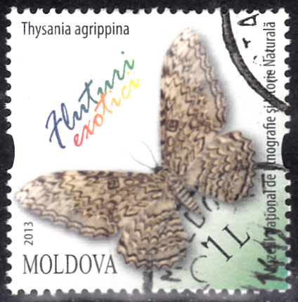In der Ausgabe "Exotische Schmetterlinge" aus Moldawien (MiNr 838) wird ein Thysania agrippina gezeigt. Es ist ein Exponat aus dem Museum für Volkskunde und Naturgeschichte in Chișinău.