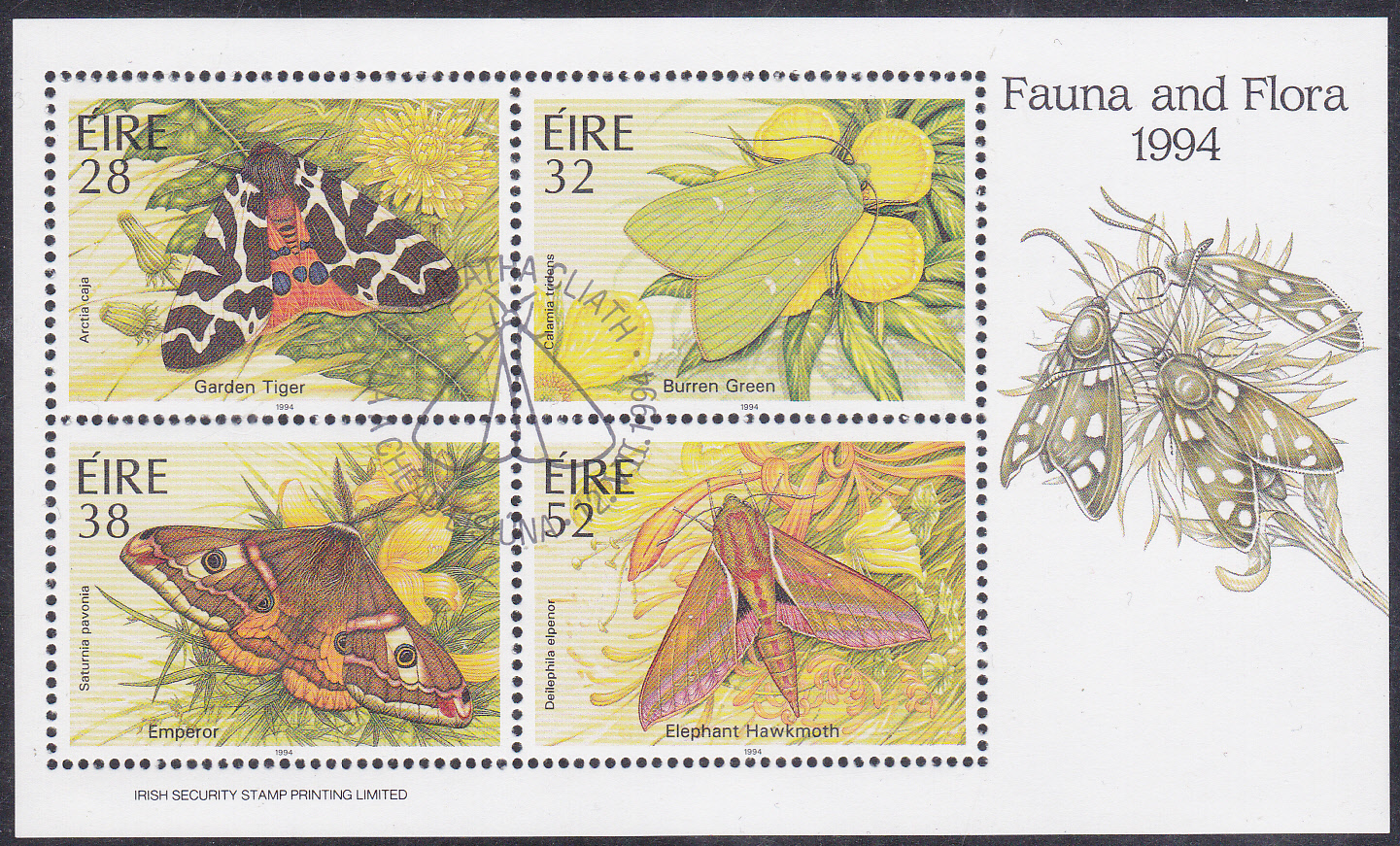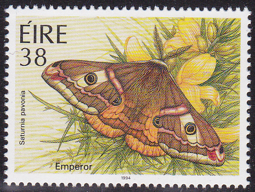 In einer Serie "Nachtfalter" ist in Irland diese Marke (MiNr 863) mit einem Kleinen Nachtpfauenauge (Saturnia pavonia) erschienen.