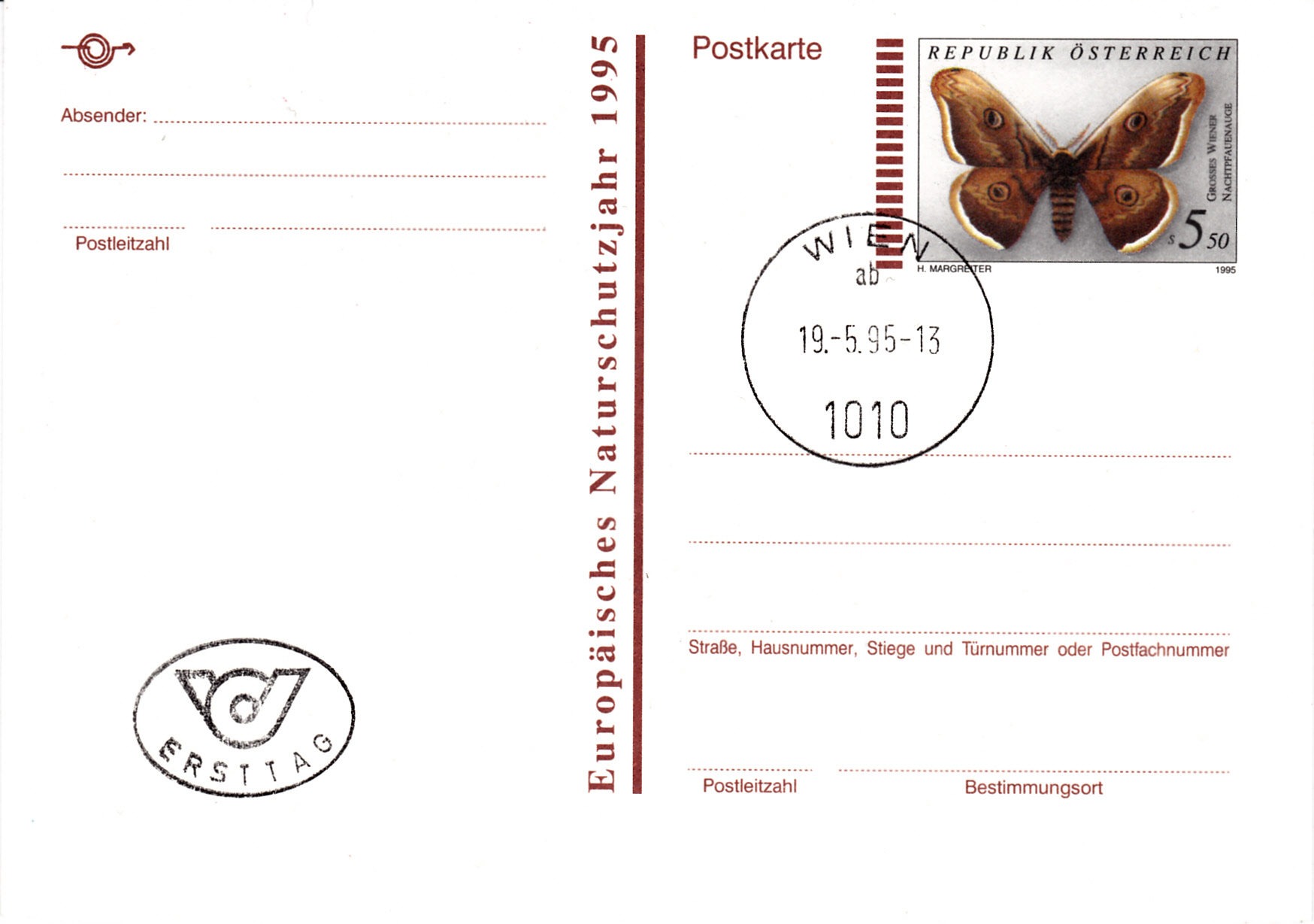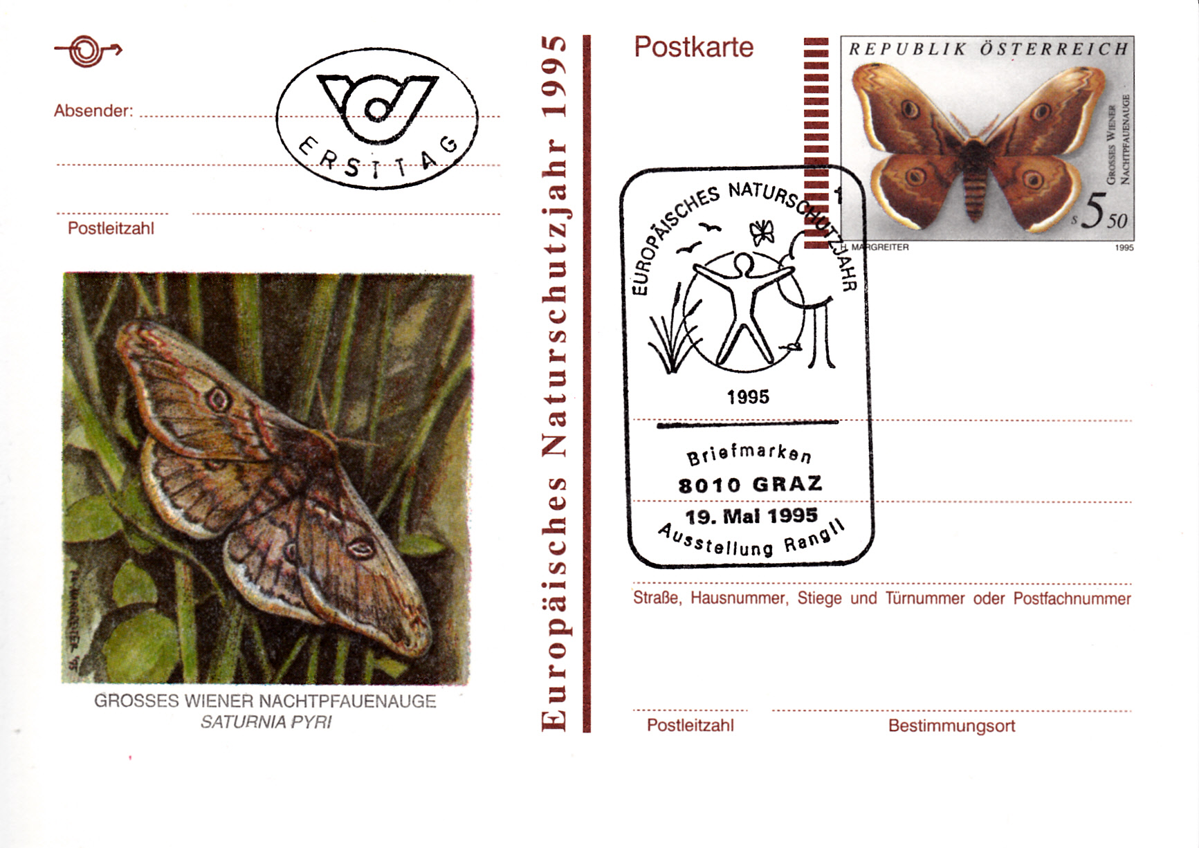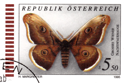 Auf dieser Marke aus Jugoslawien (MiNr 1073) ist ein Wiener Nachtpfauenauge (Saturnia pyri) abgebildet.
