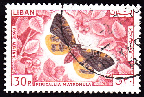 Hier eine Marke aus dem Libanon (MiNr 900) mit einem Augsburger Bär (Arctia matronula).