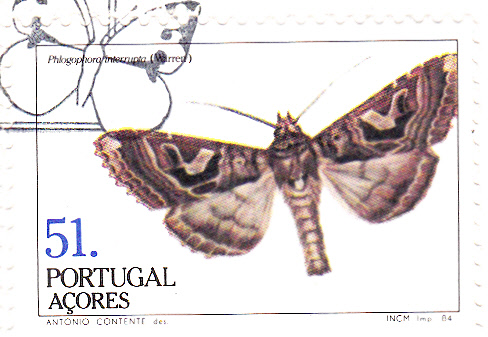 In Portugal Azoren erschien in einer Serie "Insekten der Azoren" auch eine Marke (MiNr 368 A) mit einem Phlogophora interrupta.