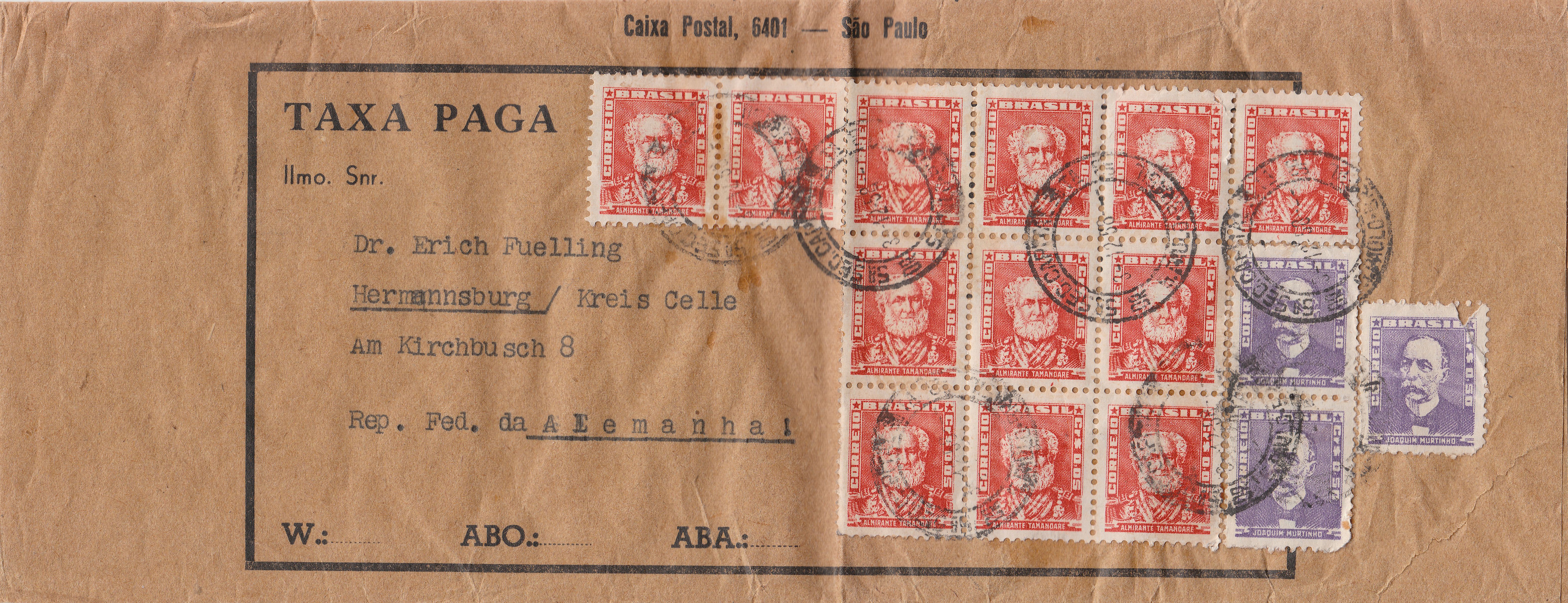 Aus Brasilien zeige ich Euch zum Achtelfinale dieses Streifband, das am 03.12.1958 als Zeitungsdrucksache nach Deutschland gesendet wurde: