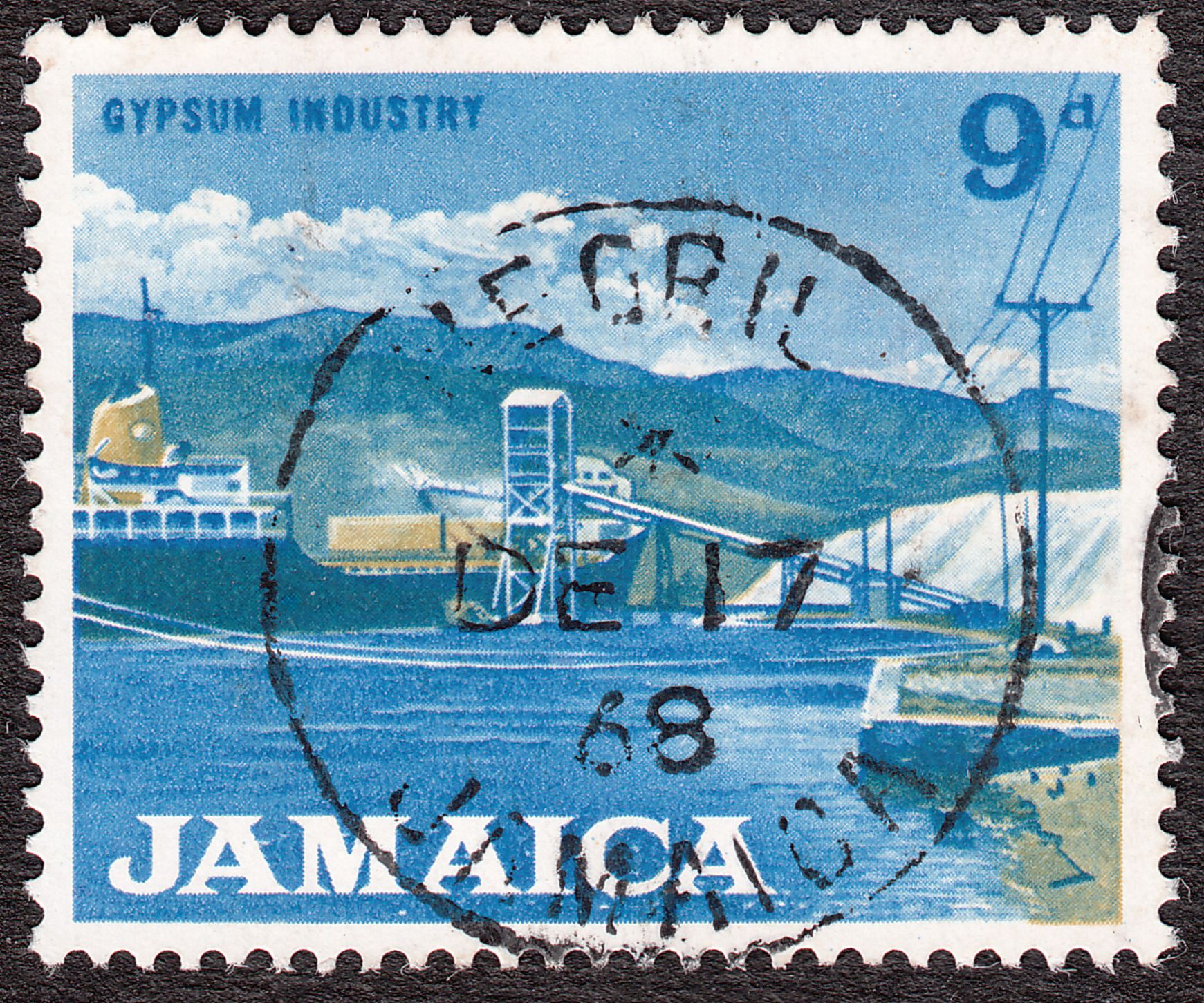 Auf diesem Postwertzeichen aus Jamaika, MiNr. 227, wird der Frachter "GYPSUM DUCHESS" gerade mit Gips beladen: