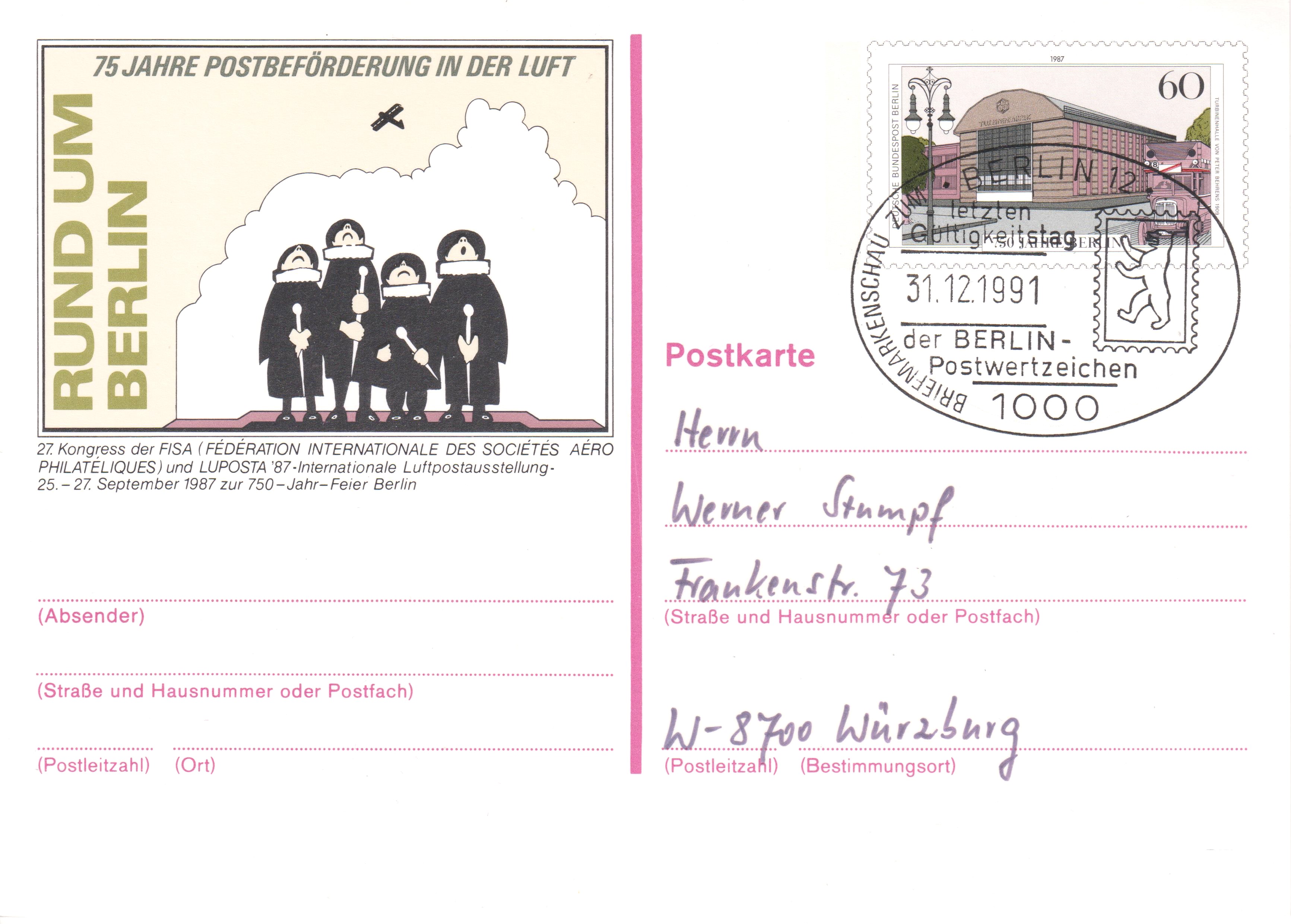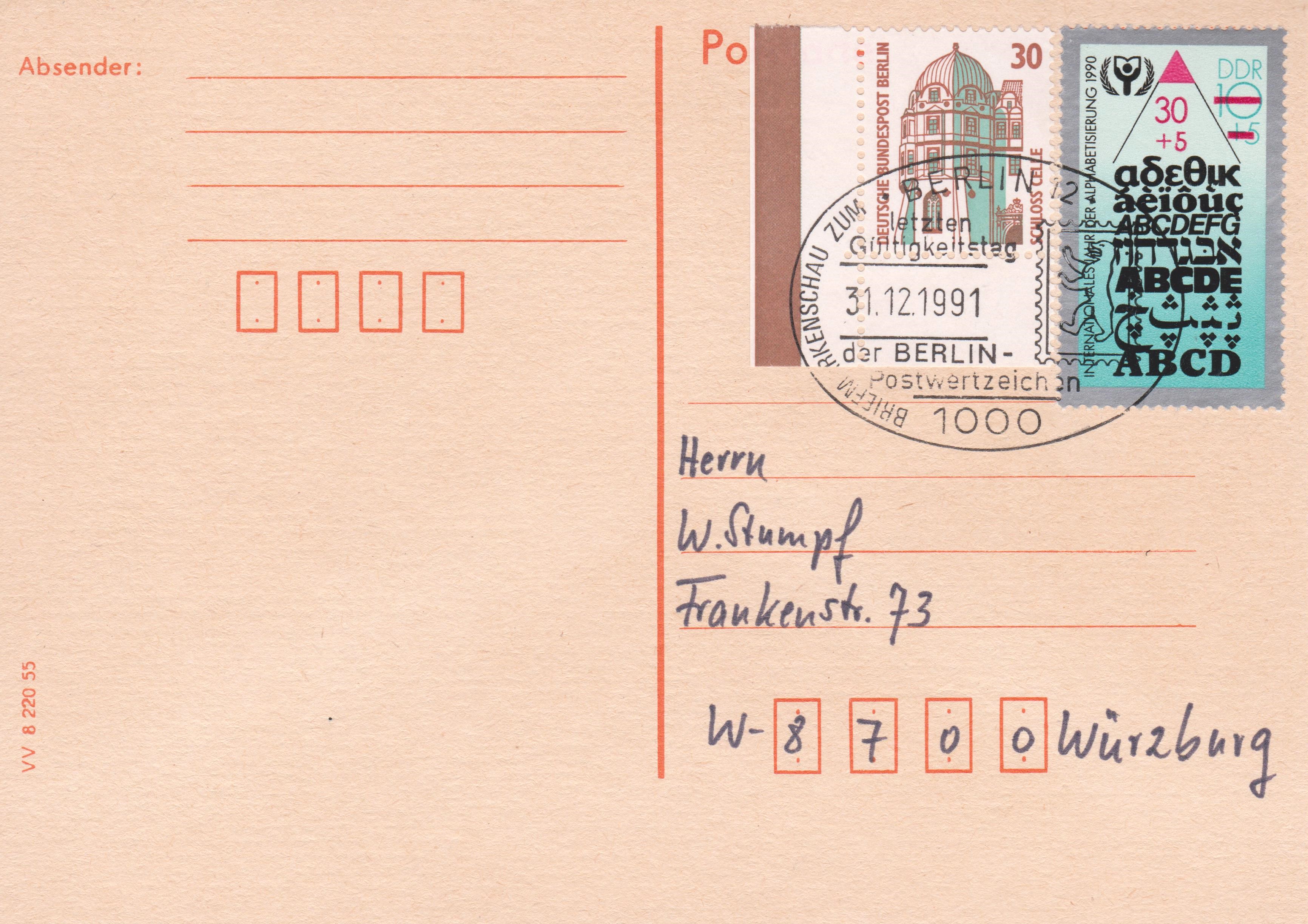 Letzter Gültigkeitstag der BERLIN-Postwertzeichen 31.12.1991