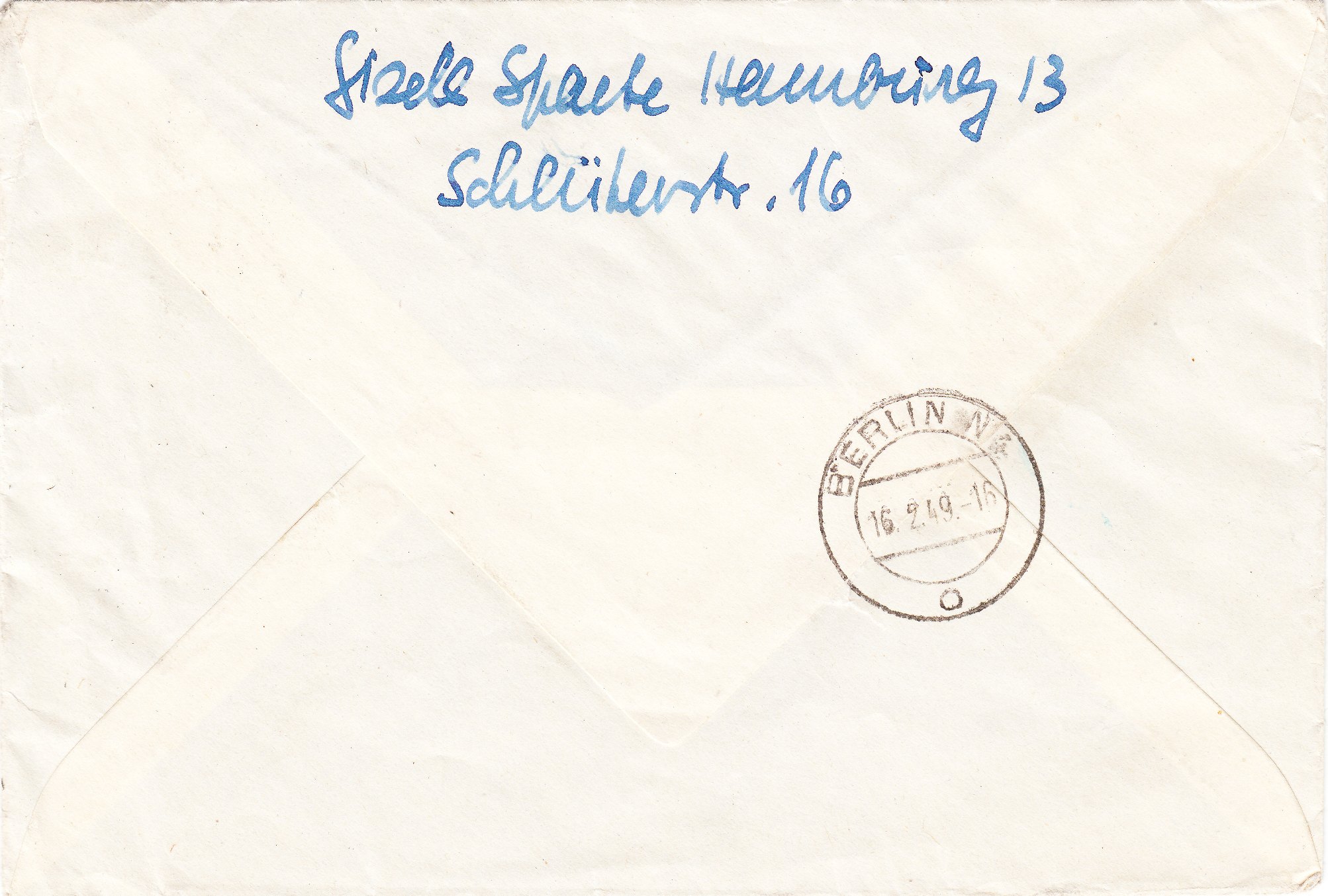 Dieser nach Berlin-Schöneberg adressierte Brief wurde am 30.12.1950 in Hamburg aufgegeben: