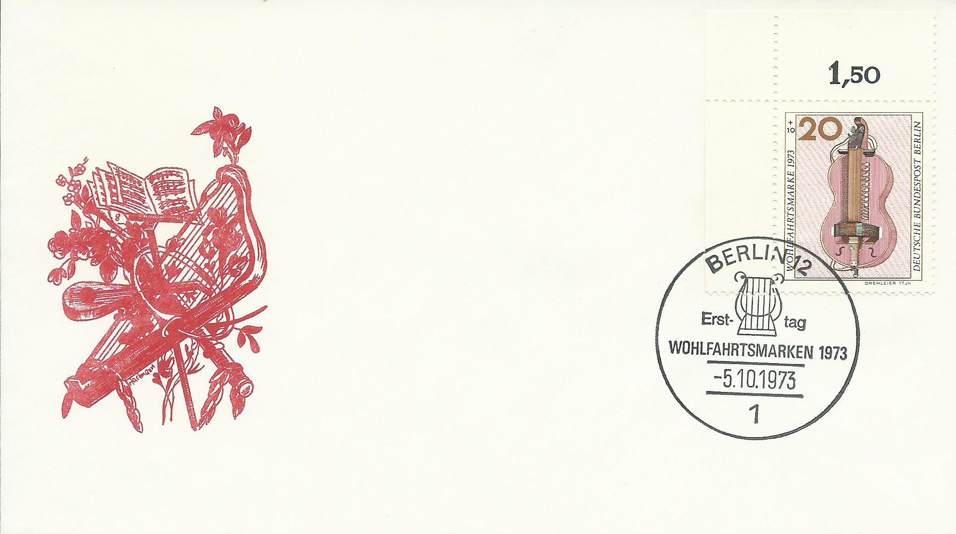 Den Abschluss für heute bildet die Wohlfahrtsserie 1973 mit den Michel-Nummern 459 – 462. Gestempelt wurden alle Belege mit dem Ersttagssonderstempel Berlin vom 5.10.73.