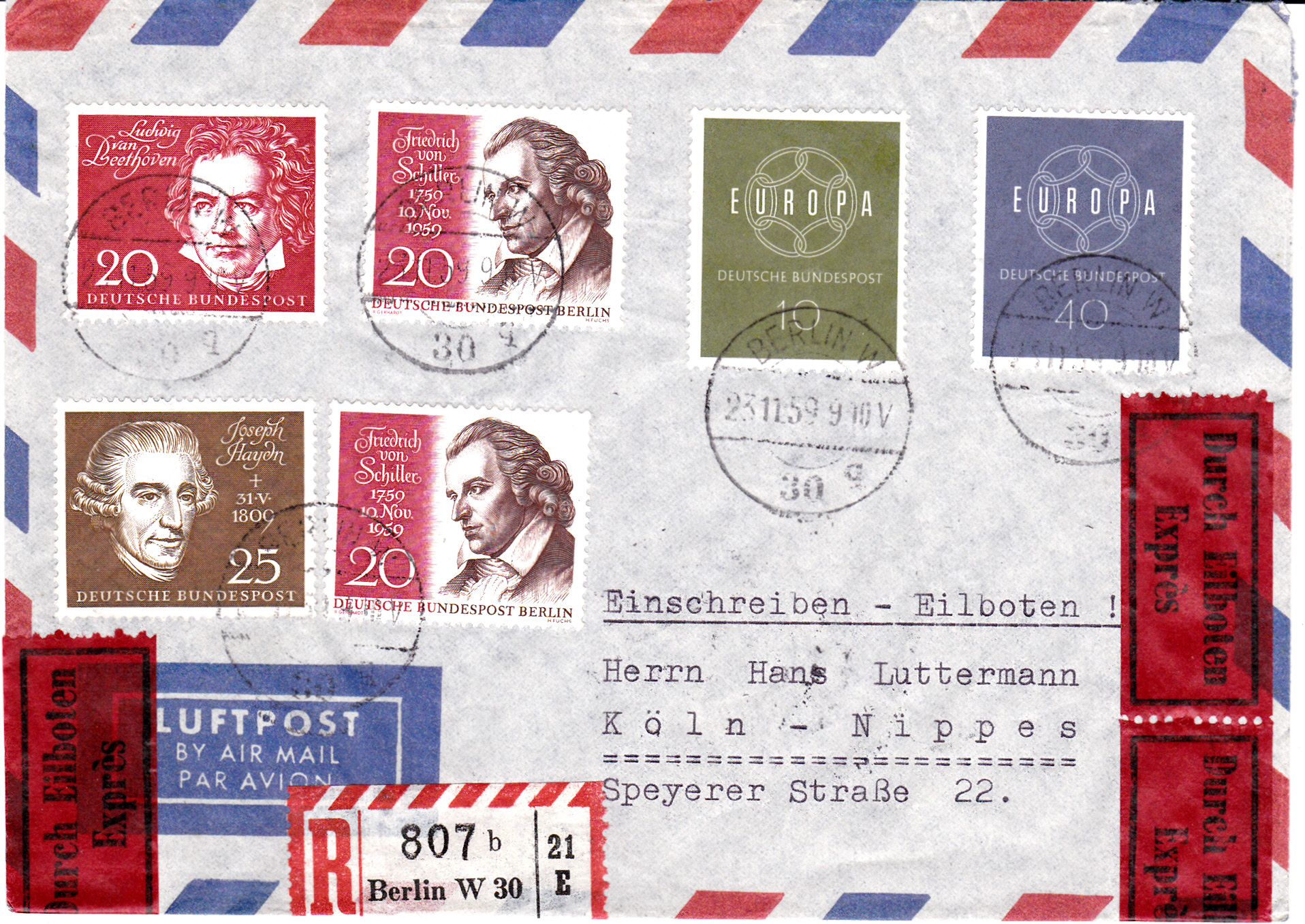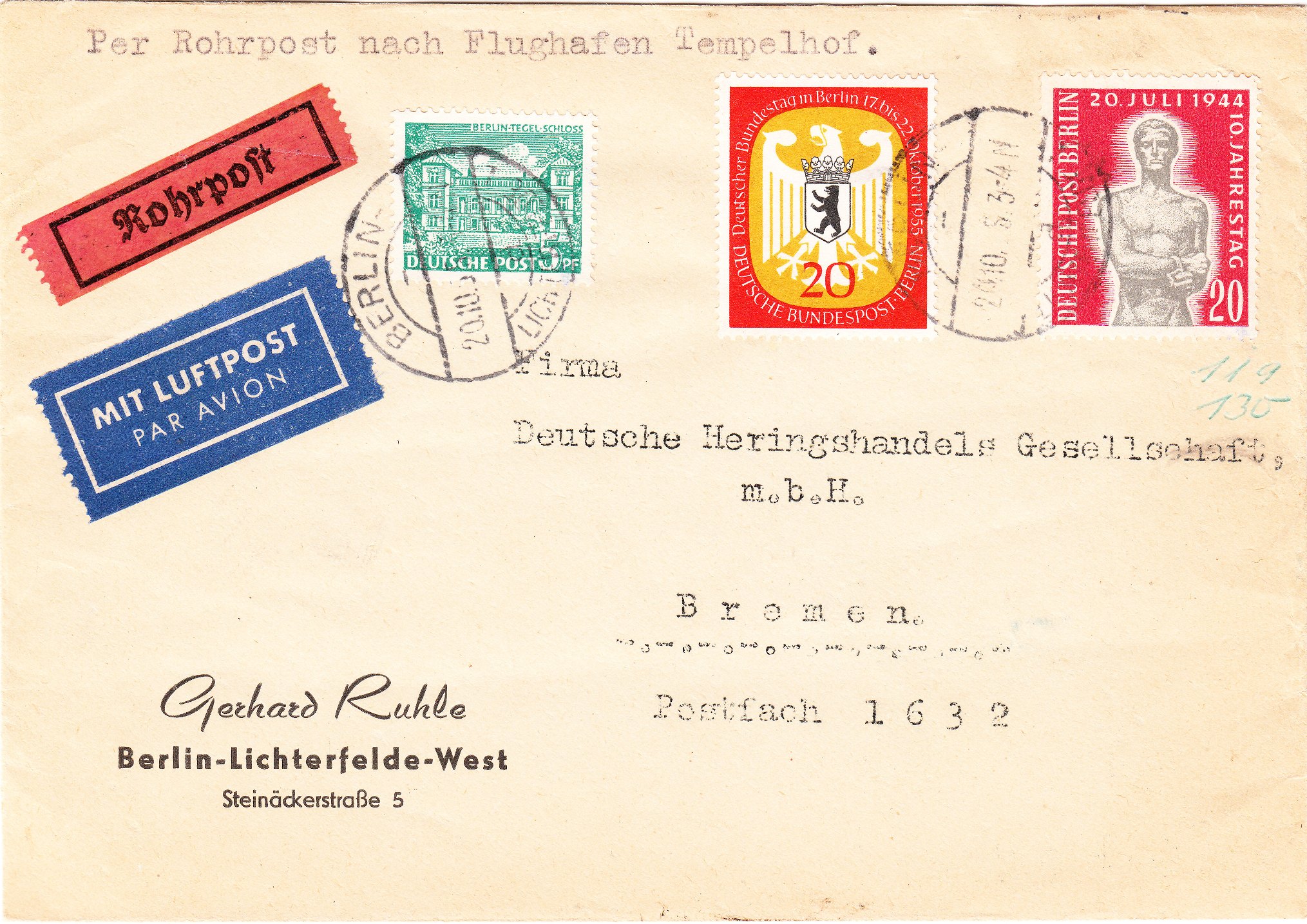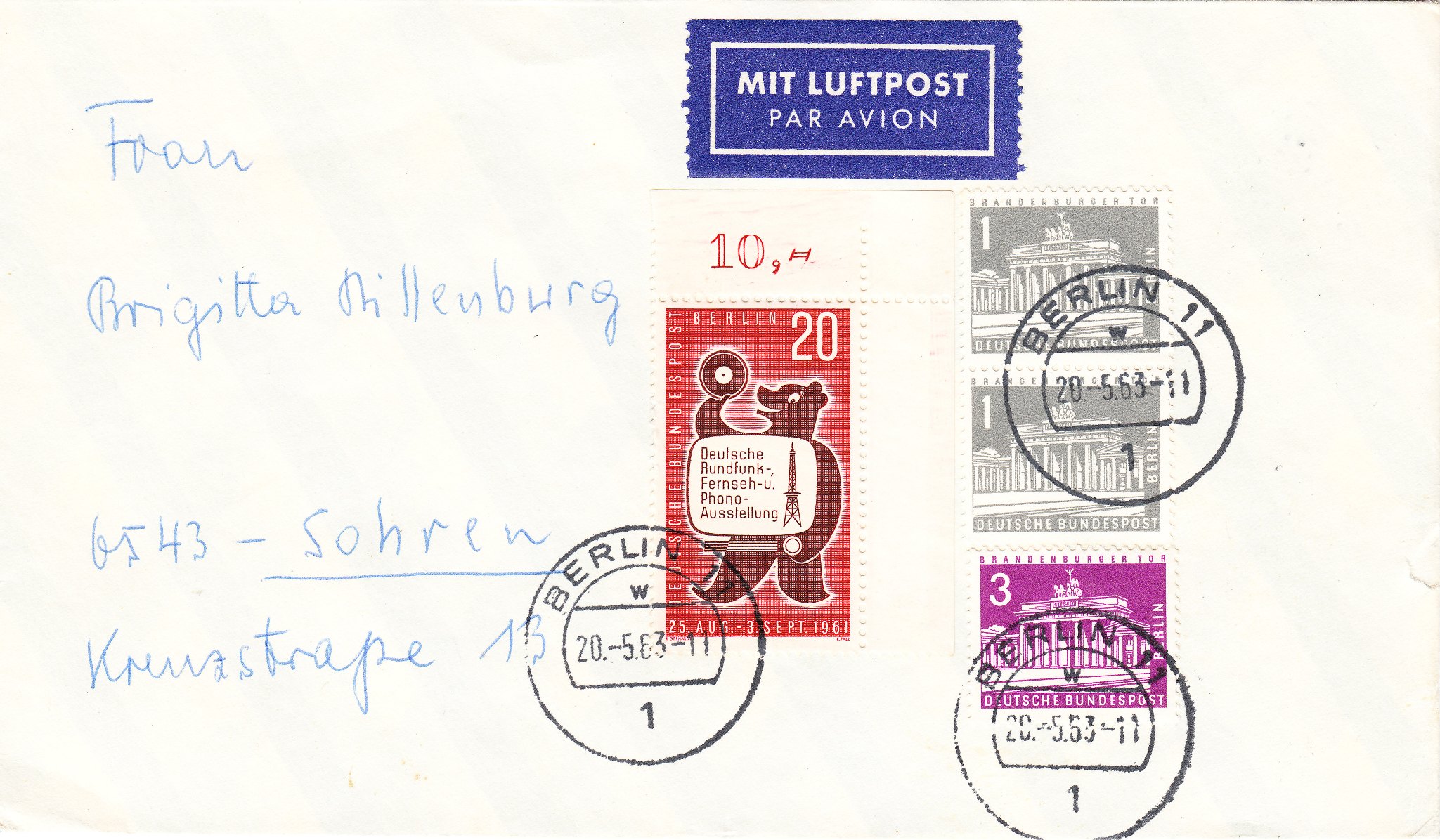 Als Luftpostgebühr wurden 5 Pfennig pro 20 Gramm fällig.