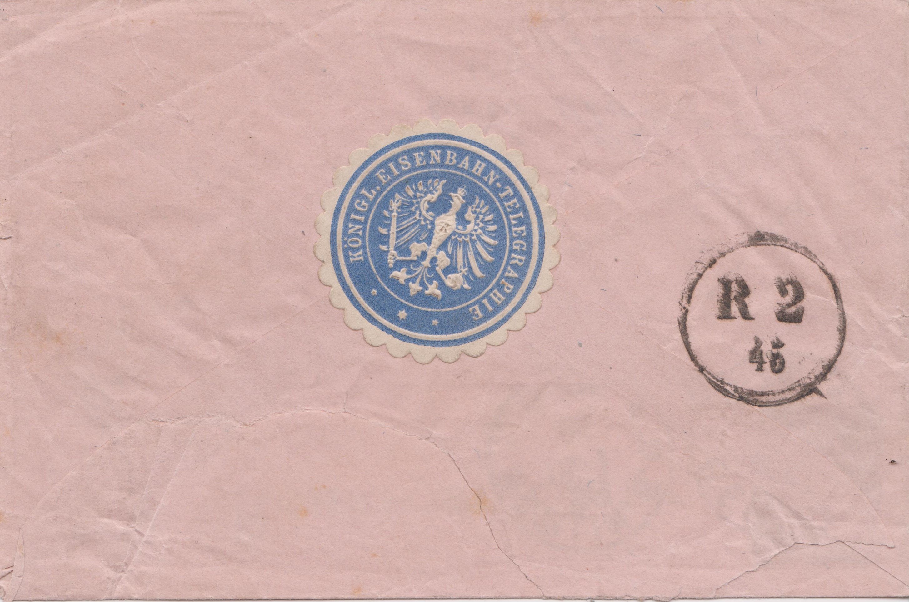 Vorderseitig links oben Leitvermerk in Blaustift "2", Rückseitig Rohrpoststempel "R 2 45".
