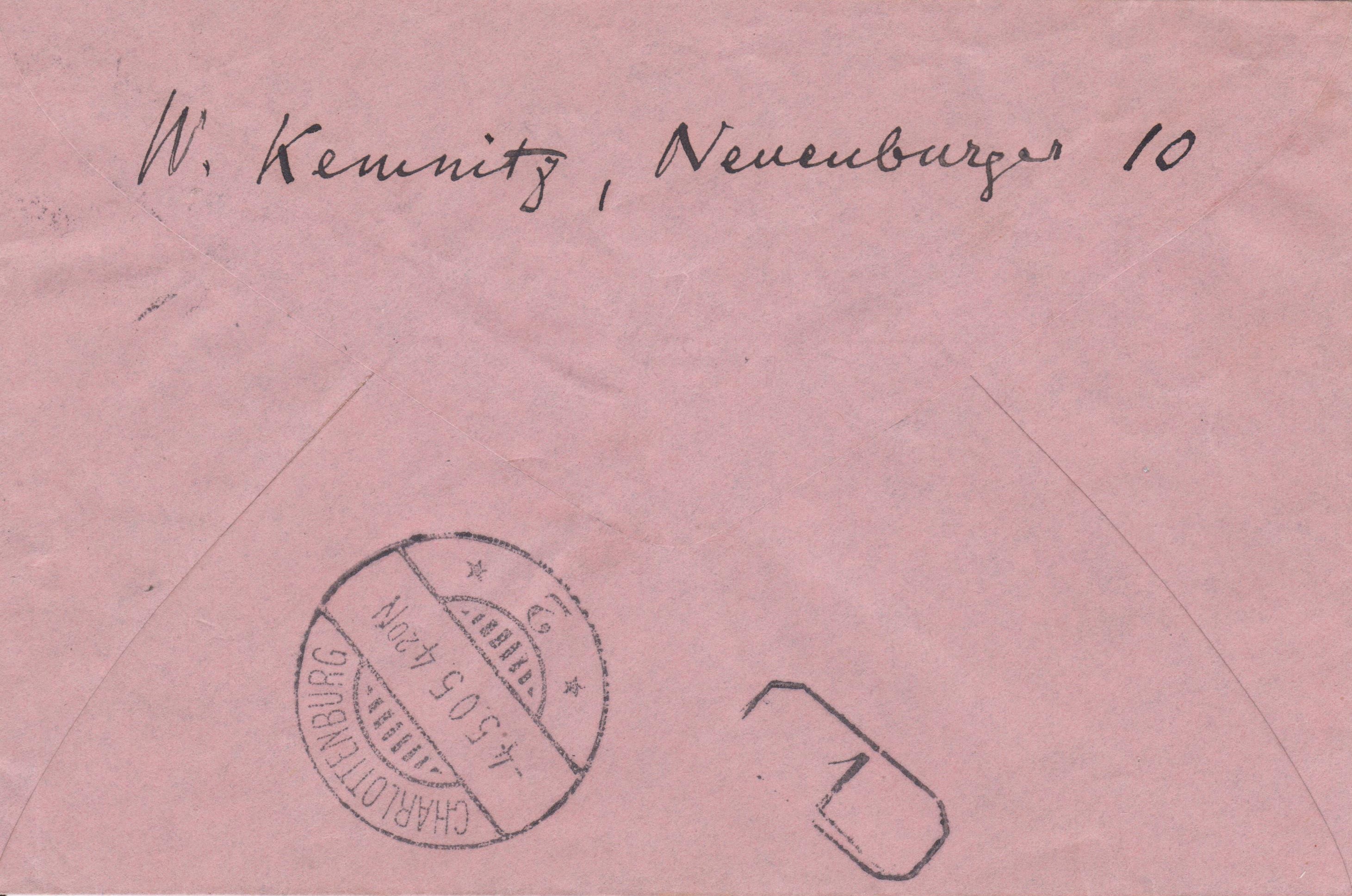 Links oben Leitvermerk in Rot "1" sowie Stempel der Rorhpost BERLIN, W. H.T.A. (R 1).
