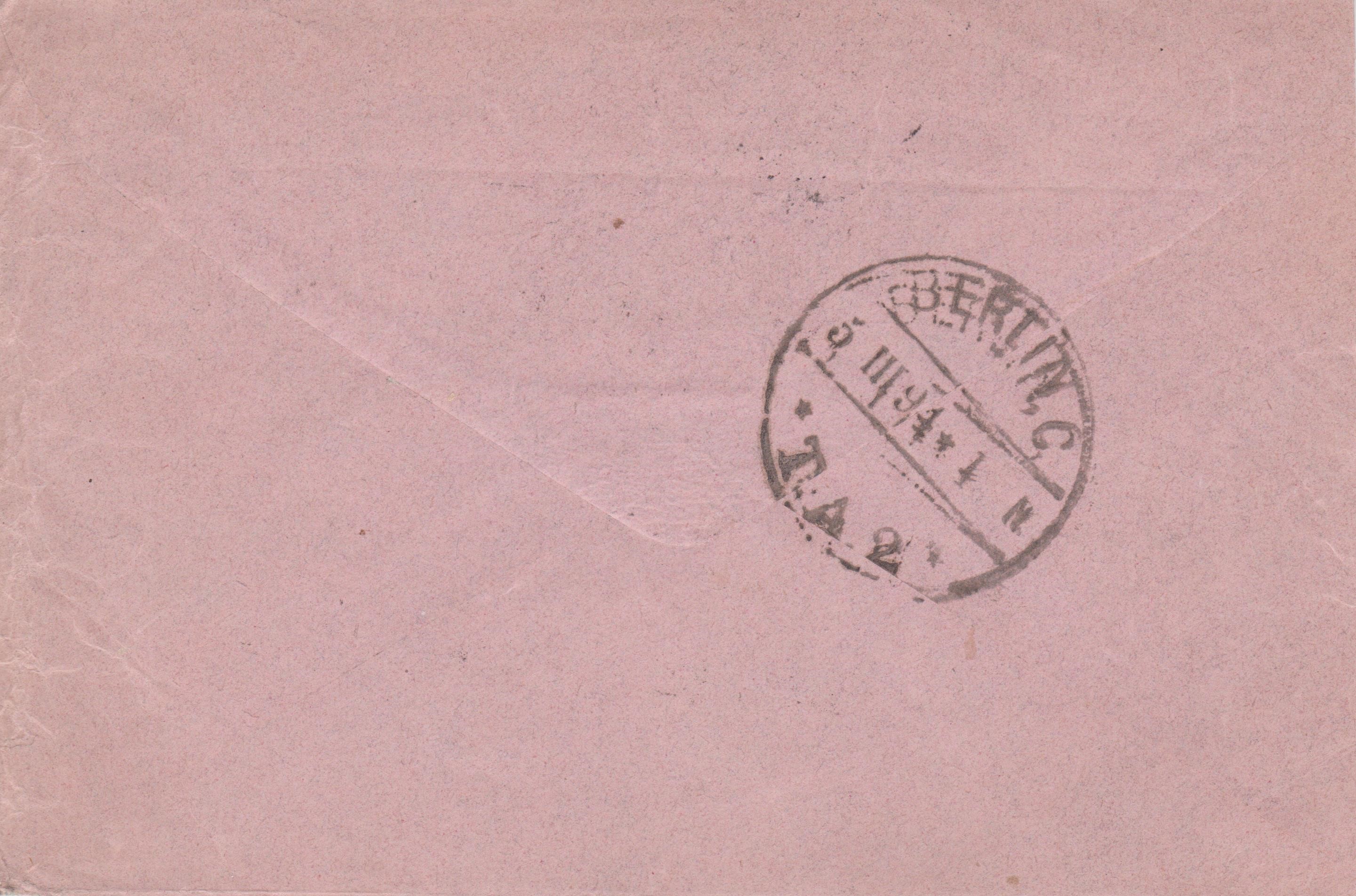 Links oben Vermerk per Rotstift "14" sowie Ankunftstempel "BERLIN, N. P 55 (R 14)".