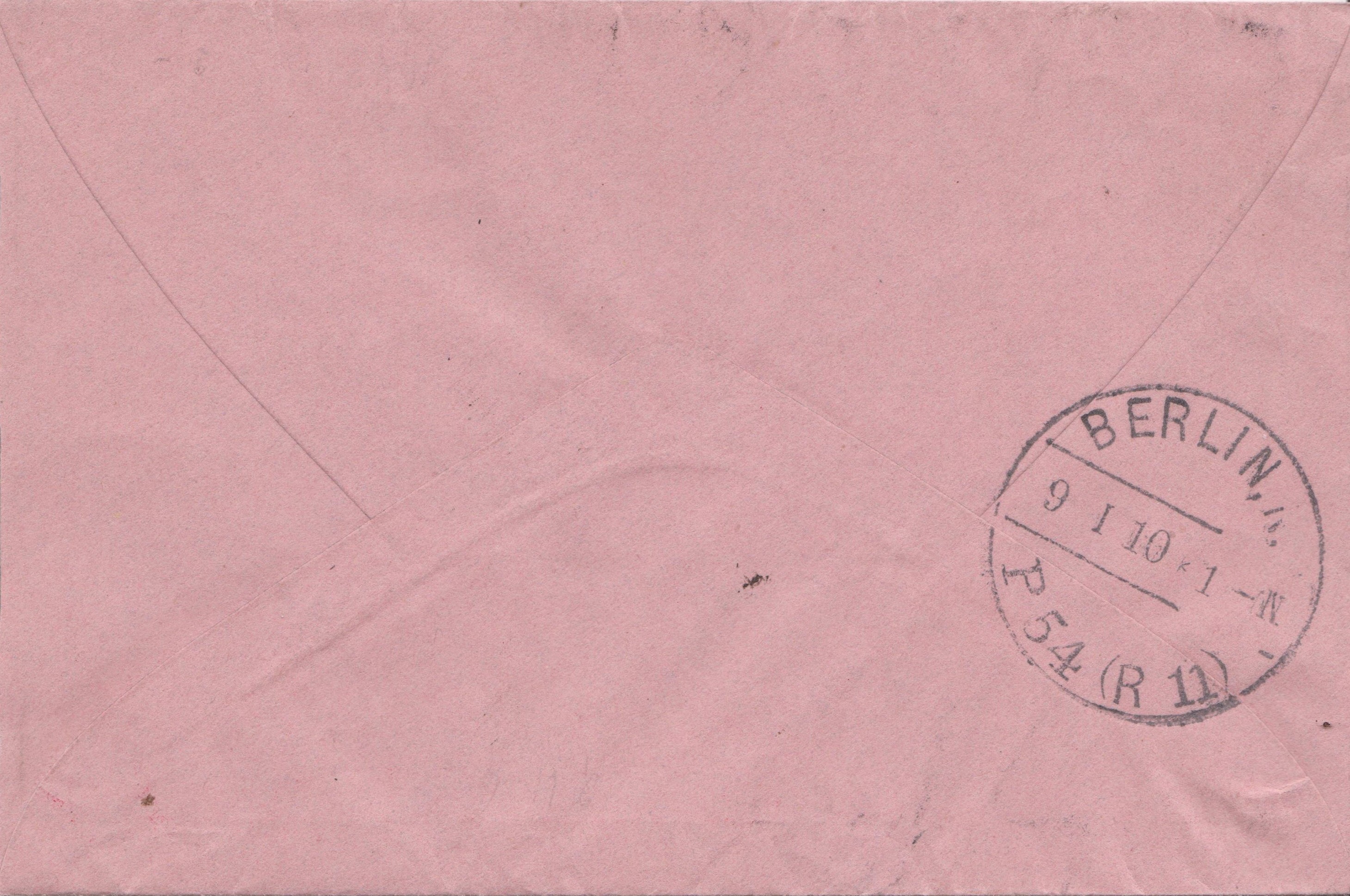 "Rohrpost=Brief", aufgegeben am 09.01.1910 in BERLIN, N. W. 21, per Rohrpost befördert nach "N 54":