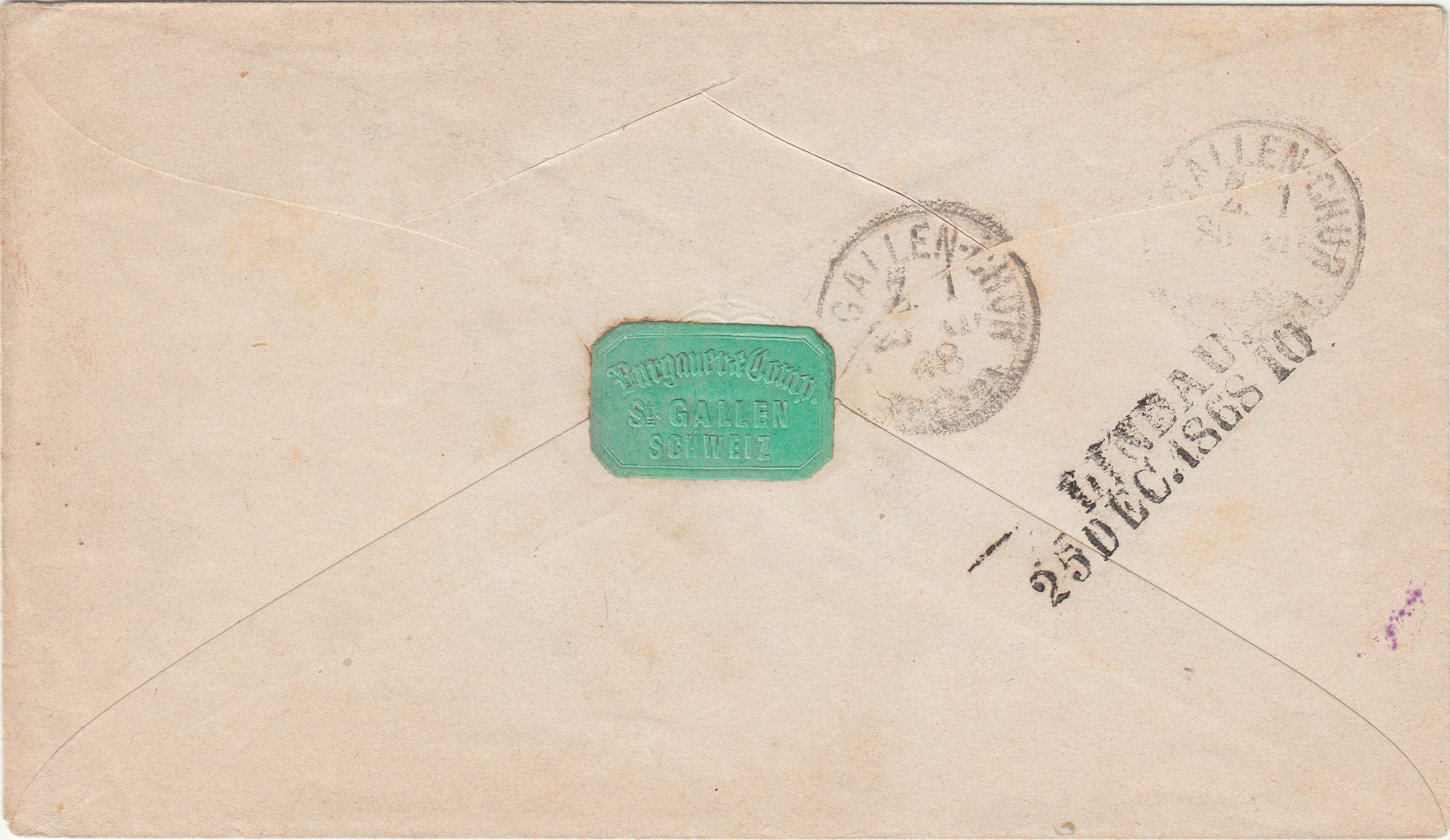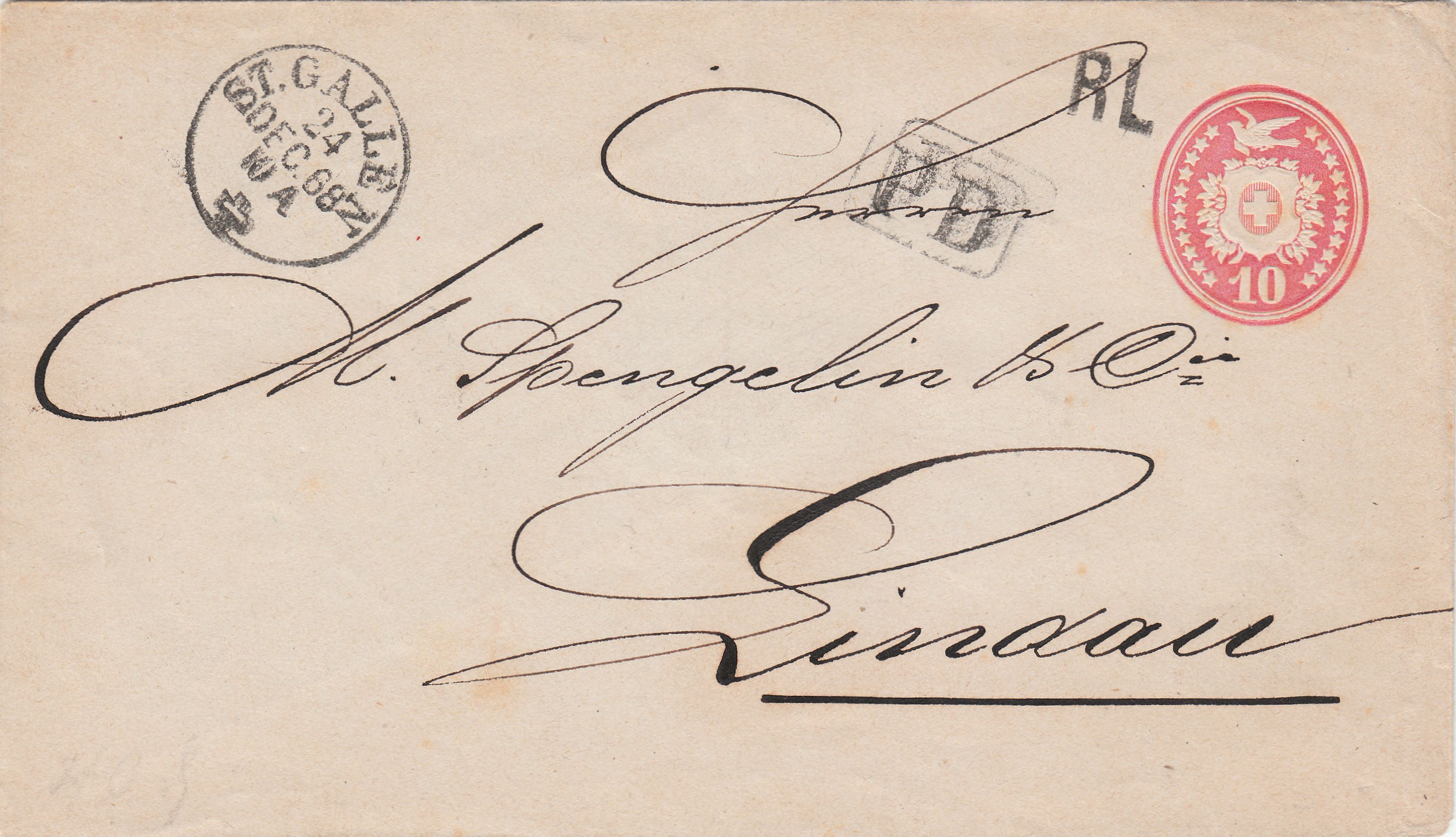 Hier als Neuerwerbung für meine Sammlung zum Thema "Weihnachten" ein am Heiligabend 1868 in ST. GALLEN aufgegebener"Tübli"-Ganzsachenumschlag, adressiert nach Lindau: