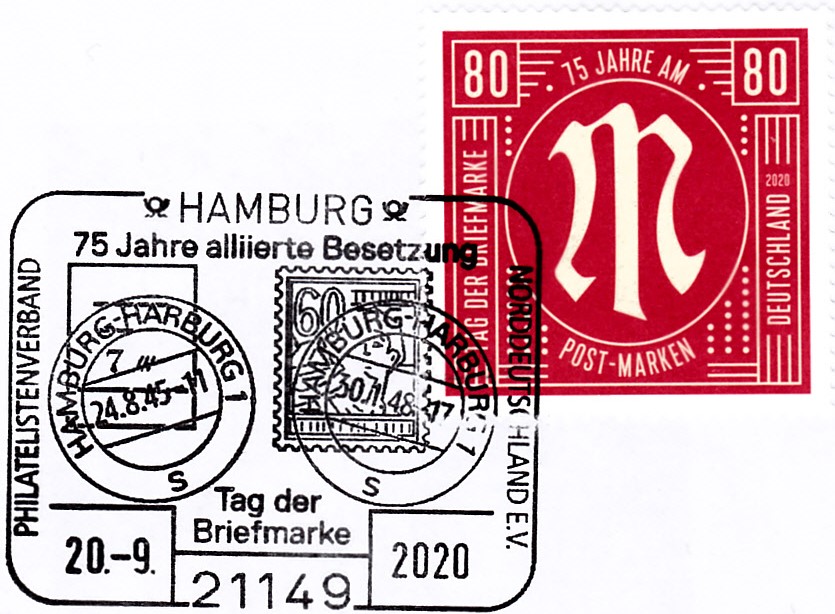 Sonderstempel des Philatelistenverbandes Norddeutschland aus Hamburg vom 20.9.2020 zum Tag der Briefmarke 2020.
