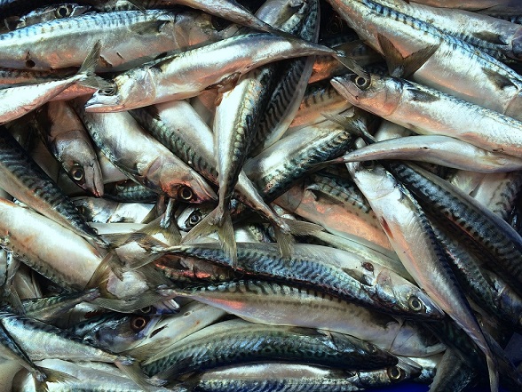 Die Makrele (Scomber scombrus) ist ein in Küstengewässern lebender Schwarmfisch.