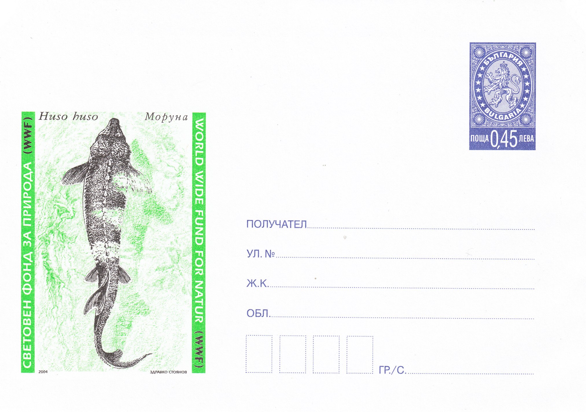 Hier eine Ganzsache von 2004 aus Bulgarien mit einer Abbildung eines Beluga-Störs = Huso huso: