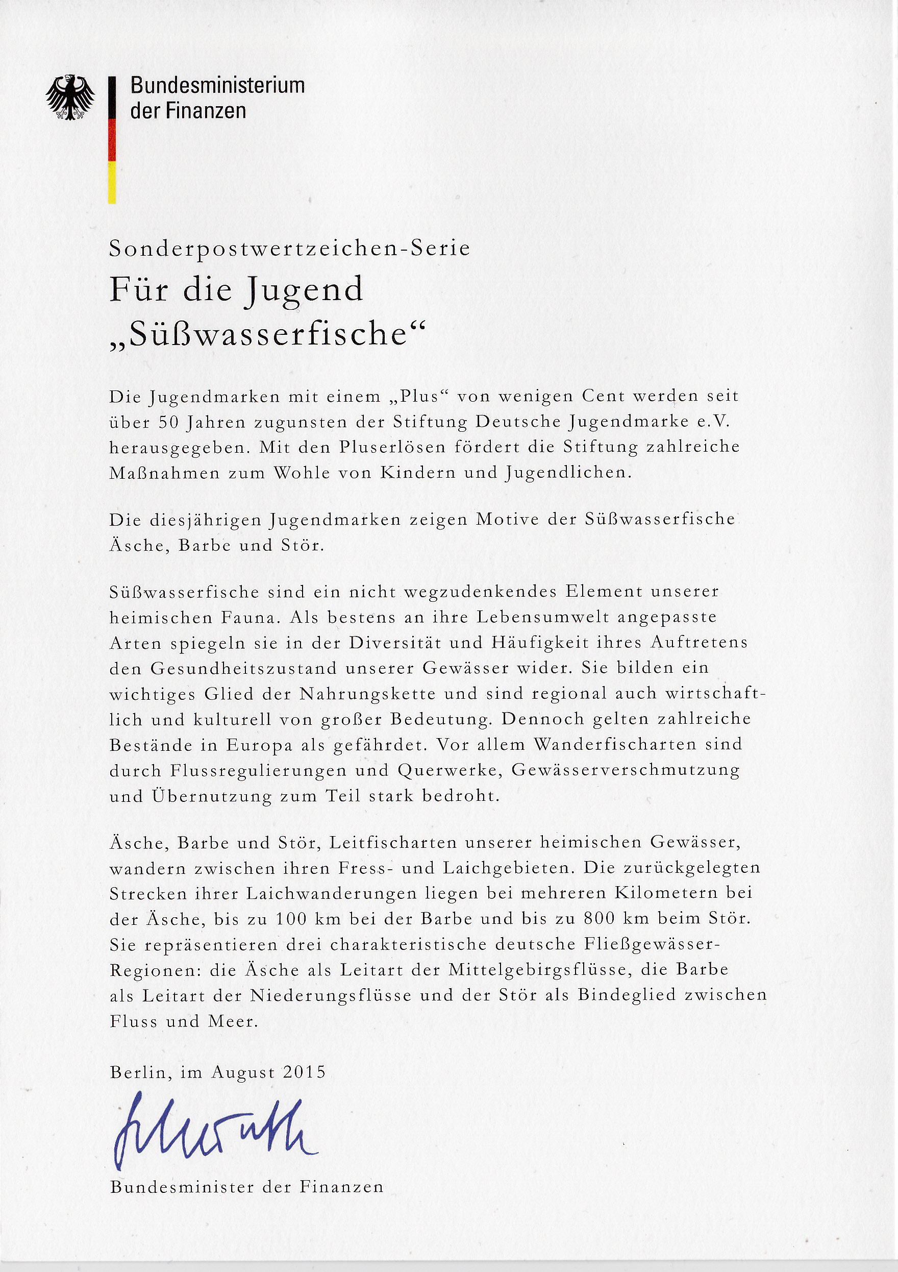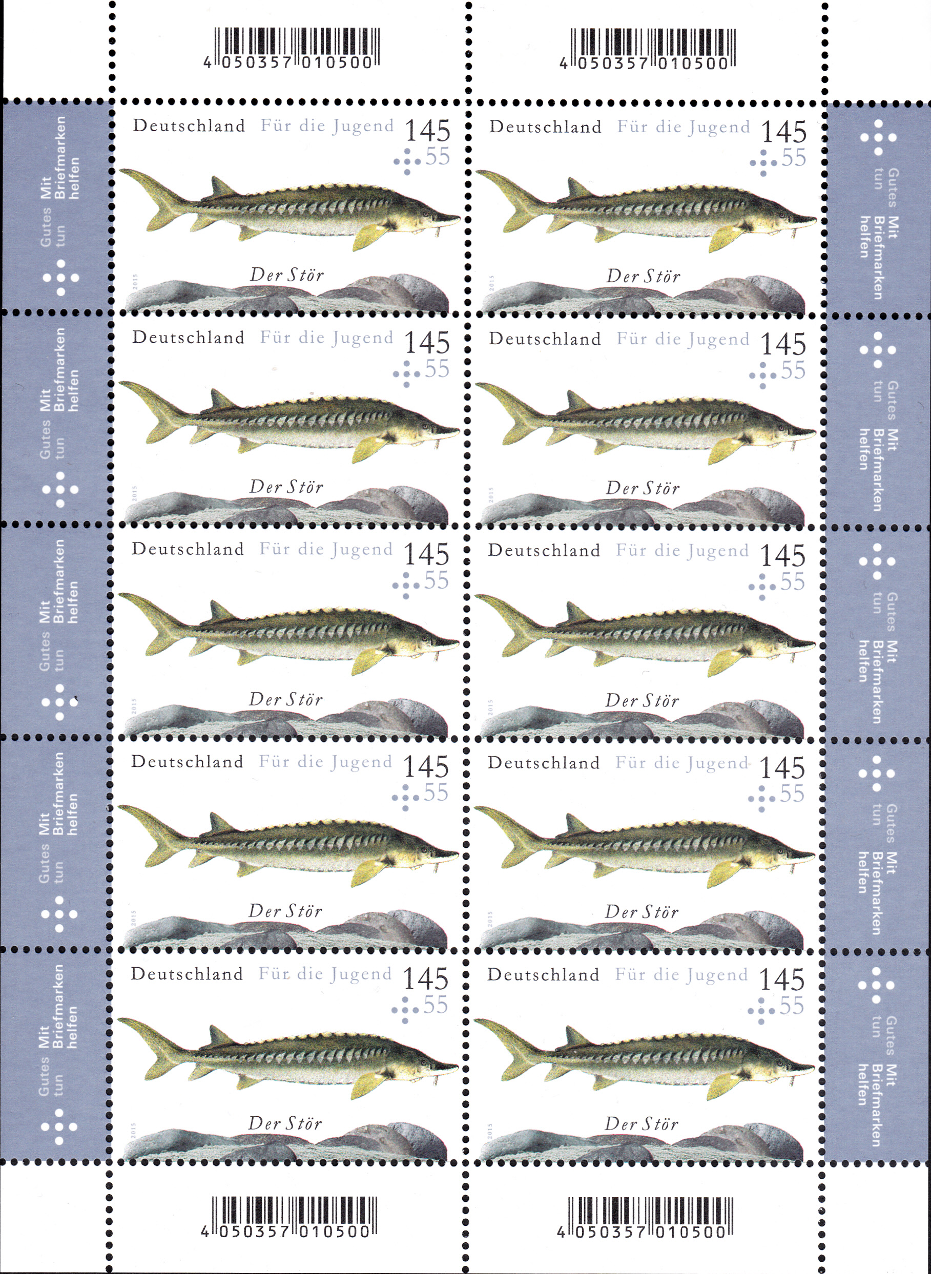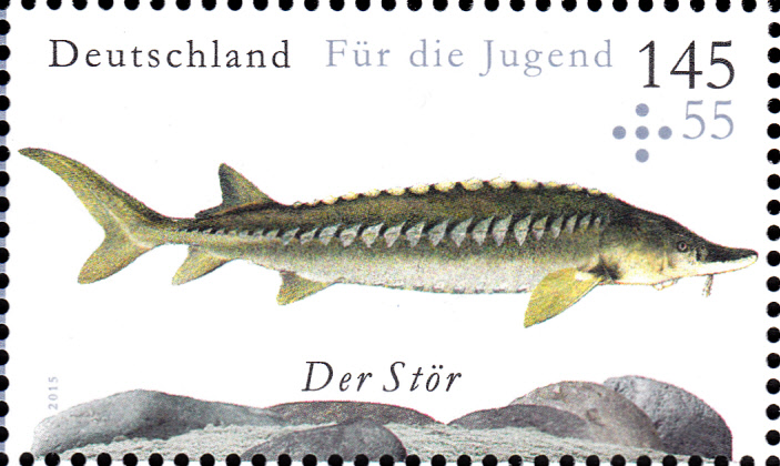 Auf der Jugendmarke 2015 zu 145 +55 Cent (MiNr 3171) ist ein Stör abgebildet.