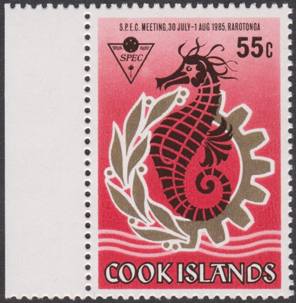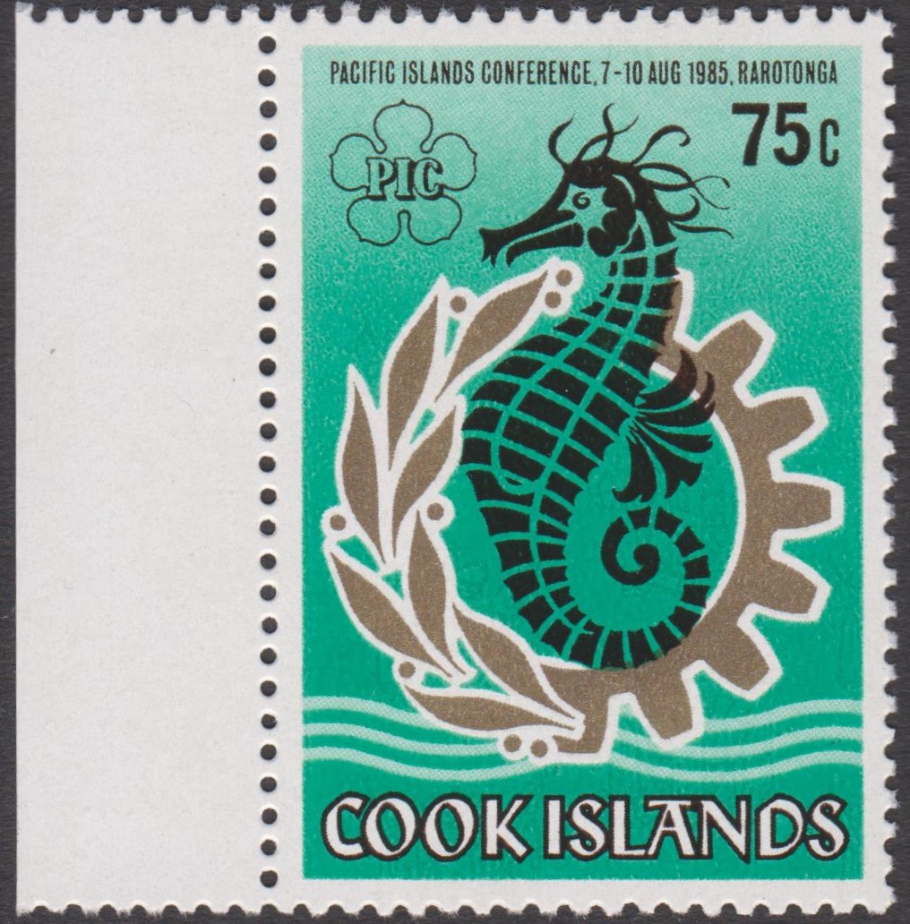 Diese linken Randstücke von den COOK ISLANDS zeigen als Motiv ein Seepferdchen: