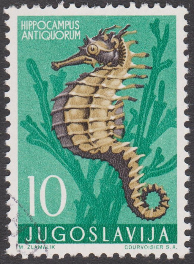 Ein Seepferdchen als Motiv auf einem Postwertzeichen aus Juguslawien: