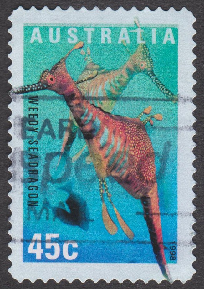 Dieses Postwertzeichen aus Australien zeigt einen WEEDY SEEDRAGON: