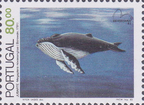 In Portugal erschien diese Marke (MiNr 1607) mit einem Buckelwal (Megaptera novaeangliae).