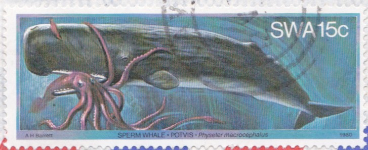 In Südwestafrika ist eine Marke (MiNr 469) mit dem hier früher schon mal beschriebenen Pottwal (Physeter macrocephalus) erschienen.