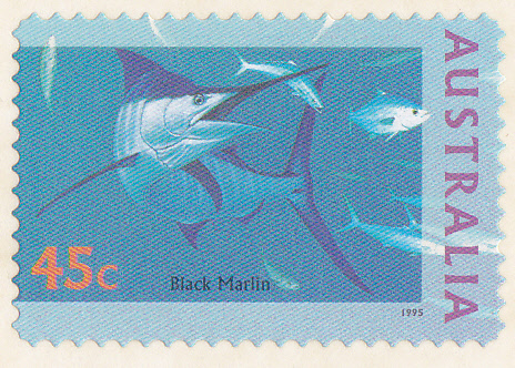 Auch die Marke mit dem Schwarzen Marlin (Istiompax indica) gibt es als selbstklebende Marke (MiNr 1521).