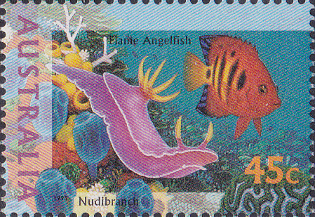 Auf dieser Marke aus Australien (MiNr 1506) ist auf der linken Markenhälfte eine Nacktkiemerschnecke abgebildet. Mehr Informationen über die Art liegen mir zur Zeit noch nicht vor.