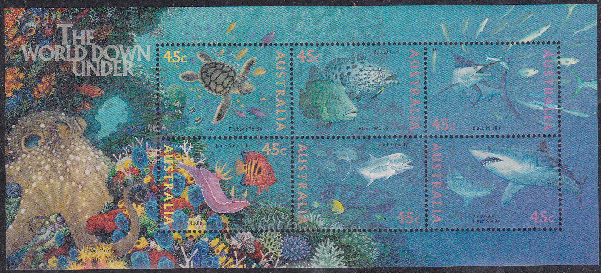 Das gleiche Motiv wurde auch in einem Block (MiNr Block 20), der alle sechs Marken der Serie "Unterwasserwelt" enthält, gezeigt. Die Blockmarken unterscheiden sich von den Bogenmarken: die Marken aus einem Bogen haben einen hellblauen Rahmen, bei den Blockmarken (MiNr. 1511-1516) geht die Zeichnung bis zum Markenrand.