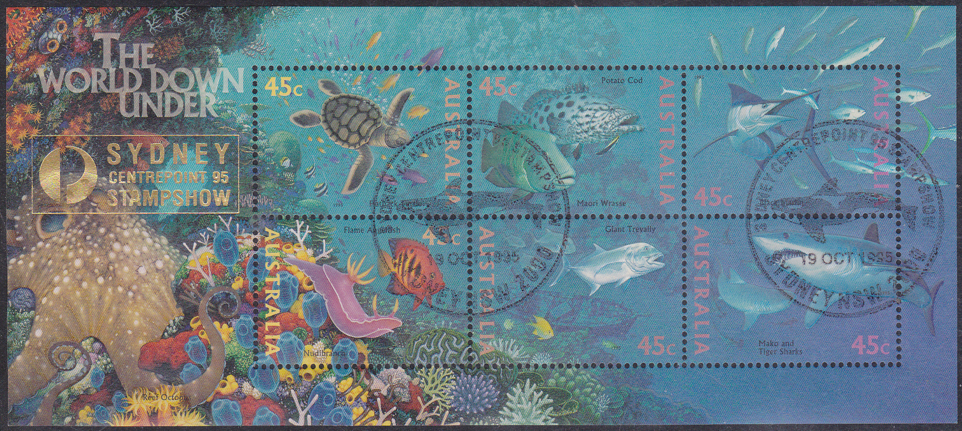 Während der Ausstellung wurden Blöcke auch mit einem Sonderstempel zur SYDNEY CENTREPOINT 95 STAMPSHOW gestempelt.