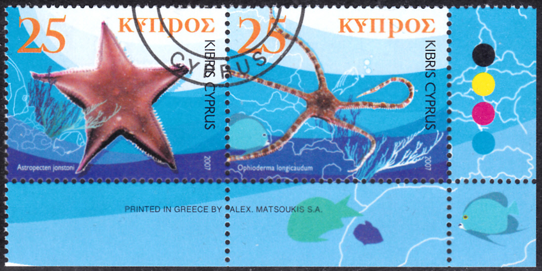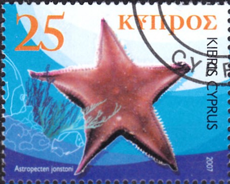 Diese Marke aus Zypern (MiNr 1089) zeigt einen Kleinen Kammseestern (Astropecten jonstoni).